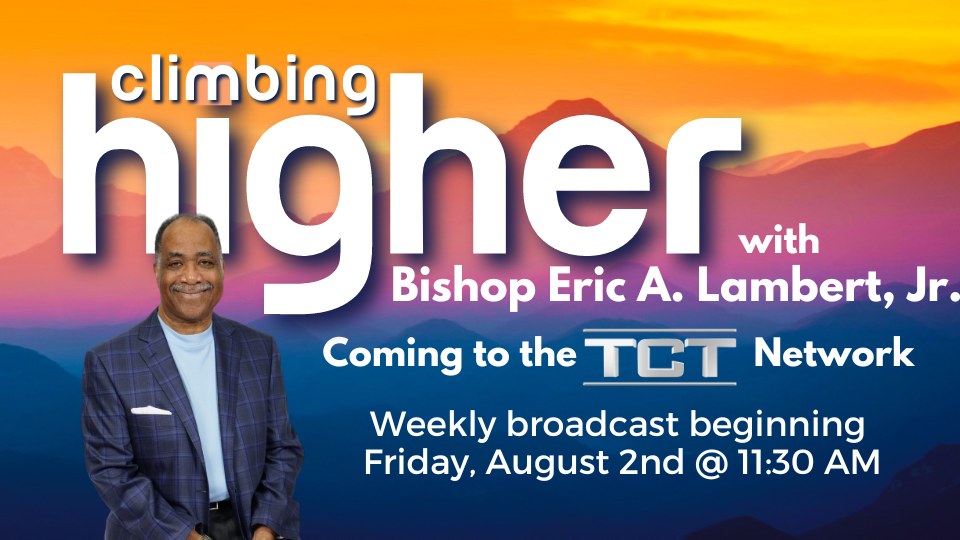 Climbing Higher with Bishop Eric A. Lambert, Jr. is now on the TCT Network every Friday at 11:30 AM. TCT Network is a broadcast, cable and streaming television network dedicated to sharing the love of Jesus with a lost and dying world, 24 hours a day, 7 days a week. We are excited to become a partner with them and invite you to support our broadcast by tuning in!
